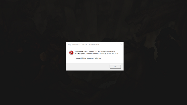 @Arcahem This might not be much help, as it is not in English. This happened on fifth logging in attempt, in midst of loading UI the Unity Client window appeared on the screen, it was loading and then I got this announcement. It says that AMD software noticed that there had been a driver's timer cutdown.